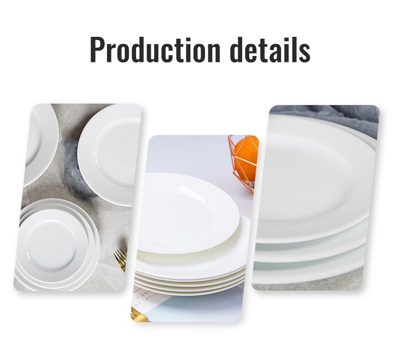 The white round flat ceramic plate with classic design, the wide edge, white color.Elegant white finish to complement existing kitchen decor. They are lead-free, high-quality dinner plate set offer reliable strength and durability. These plates can be simple, stylish, elegant. A variety of sizes to meet the needs of use.